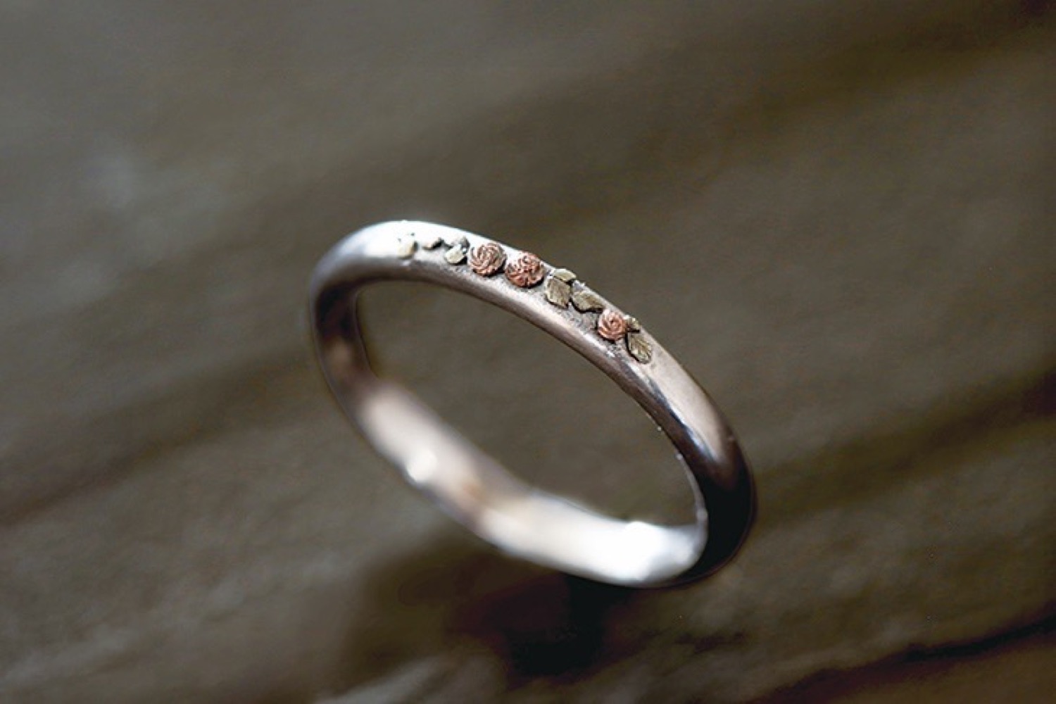 中村:私も仕事を始めた時から、象嵌の優美さに感動し、このすばらしさを多くの人に知ってもらいたいと思っていました。そして「指輪への象嵌なら皆が身につけられる」と思いつづけていました。ただ、これまでの技術では、細く華奢な指輪に象嵌を施すことができません。研究し、少しずつ工夫を積み重ね、ついに微細な表現を施し「キュン」とくる指輪にまで究めることができました。そしてその工夫、技術が、特許までいただいたのです。