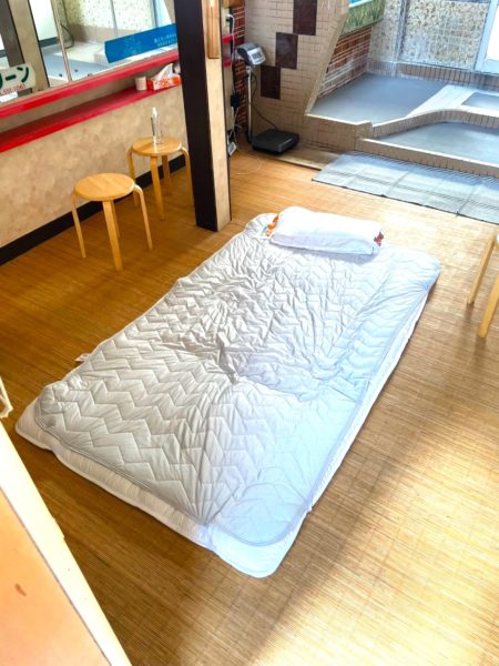 というわけで、風呂屋を始めて3ヶ月が過ぎようとしております。銭湯のいち常連客から番台のアルバイトを経てついには銭湯の経営者になったわけなんですが、実際に自分で銭湯をやってみた感想としては、、、、めちゃくちゃしんどい!!決して風呂屋の仕事を舐めていたつもりはありません、しかしアルバイトで働くのと経営するのとではまるで違う!やることも考えることも多過ぎててんてこ舞い!頭も体も疲労困憊です。そんな時こそゆっくり湯に浸かって、、、と、行きたいところなんですが、、、うちは深夜1時まで営業しているので、締め作業をしてから一人で風呂に入って寝るとなると、床につくのが3時をまわってしまうんですよね。今は熊野寮を出て大黒湯の2階に住み込んでいるんですが、2階には空調がないので夏の間は脱衣所やロビーに布団を敷いて寝ていました。
