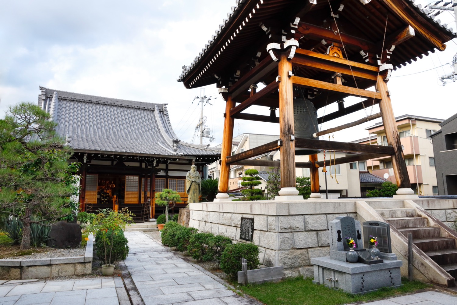阪急桂駅から歩いて10分、市バス「中桂」のバス停から歩いて3分ほどにある、浄土真宗本願寺派のお寺、安楽寺です。