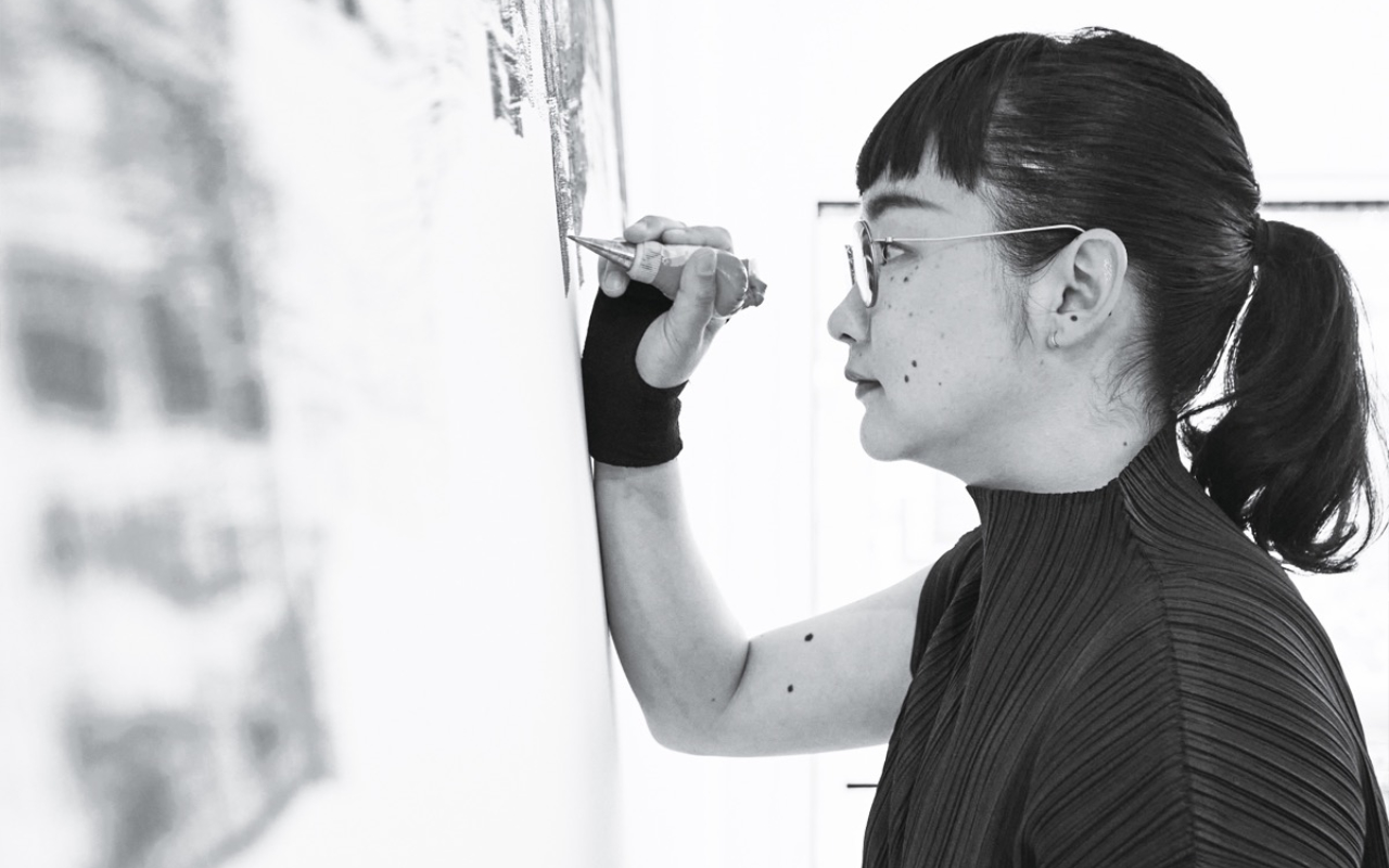 ドットや曲線の反復により、独自の世界観を表現する現代美術作家・大和美緒さん。国内はもとより、海外の画商やコレクターからも注目される際立った作風は、もがき苦しんだ末に見つけたものだ。