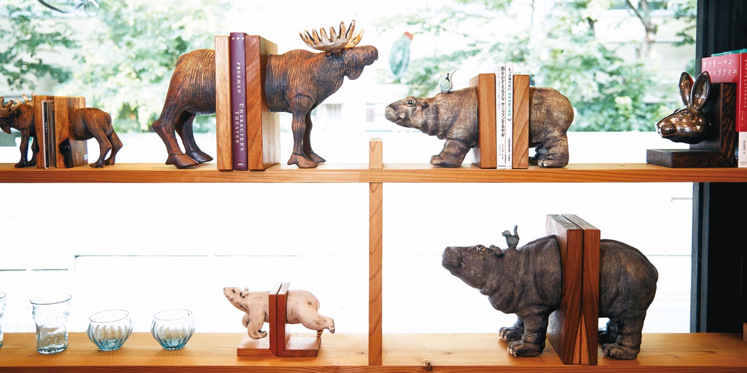 その心意気は本業の陶芸も同じだ。転機はコロナ禍。冨金原さんはここ数年、本来は料理の脇役であるはずの器がブームとなっていることになじめず、陶芸家として葛藤を感じていた。そして読書が好きな自分と向き合うなかで動物を題材にしたブックエンドを思いつき、創作を始めた。ヘラジカやクジラなどをモチーフに、陶製のブックエンドを多数発表してきた。作品を通じて本棚を楽しい場所にすることが目下の夢だ。